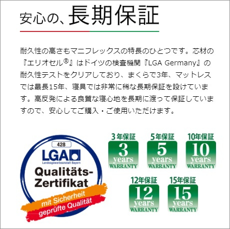 一方、マニフレックスはドイツの検査機関「LGA」の耐久性テストをクリアしています。